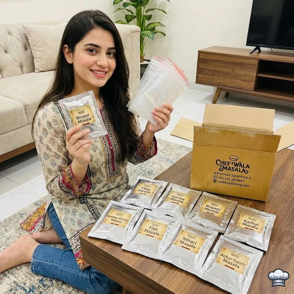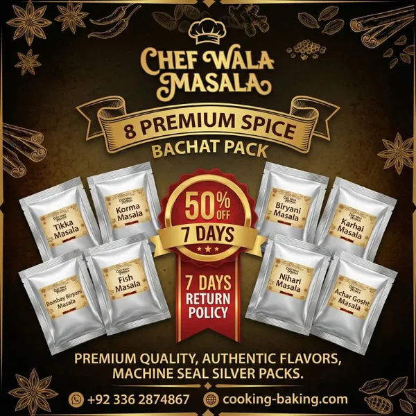 पाना शेफ वाला कम्प्लीट किचन बंडल (8 पैक) 50% छूट के साथ, एक सुविधाजनक पैक में 8 प्रीमियम मसाले शामिल हैं: शेफ वाला टिक्का, कोरमा, बिरयानी, कढ़ाई, बॉम्बे बिरयानी, अचार गोश्त, निहारी और मछली। सावधानीपूर्वक चुने गए प्राकृतिक मसालों से बना और बिना किसी प्रिजर्वेटिव के, यह मसाला बॉक्स आपको घर पर ही प्रामाणिक पाकिस्तानी व्यंजन बनाने की सुविधा देता है, जिनमें भरपूर सुगंध, संतुलित स्वाद और रेस्टोरेंट जैसे परिणाम मिलते हैं। पारिवारिक भोजन, विशेष अवसरों या पारंपरिक देसी स्वाद के शौकीन लोगों को उपहार देने के लिए बिल्कुल उपयुक्त।